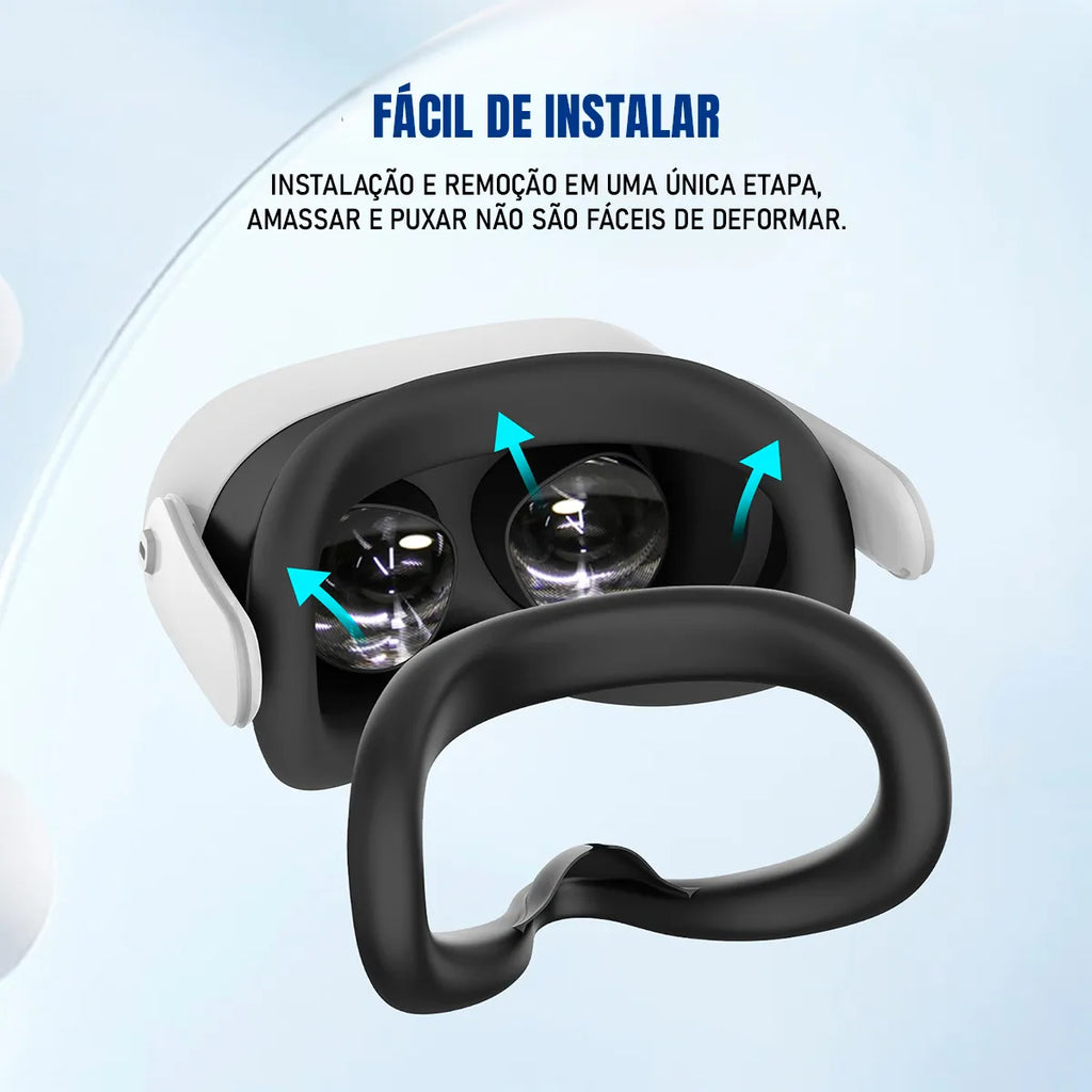 A manutenção da higiene do seu headset torna-se uma tarefa rápida e eficiente. A superfície de silicone permite a limpeza instantânea com lenços umedecidos ou lavagem completa com água e sabão neutro, sendo o acessório indispensável para quem compartilha o equipamento ou utiliza o VR para atividades físicas. O design inteligente garante um encaixe preciso, eliminando vazamentos de luz e otimizando a imersão.
