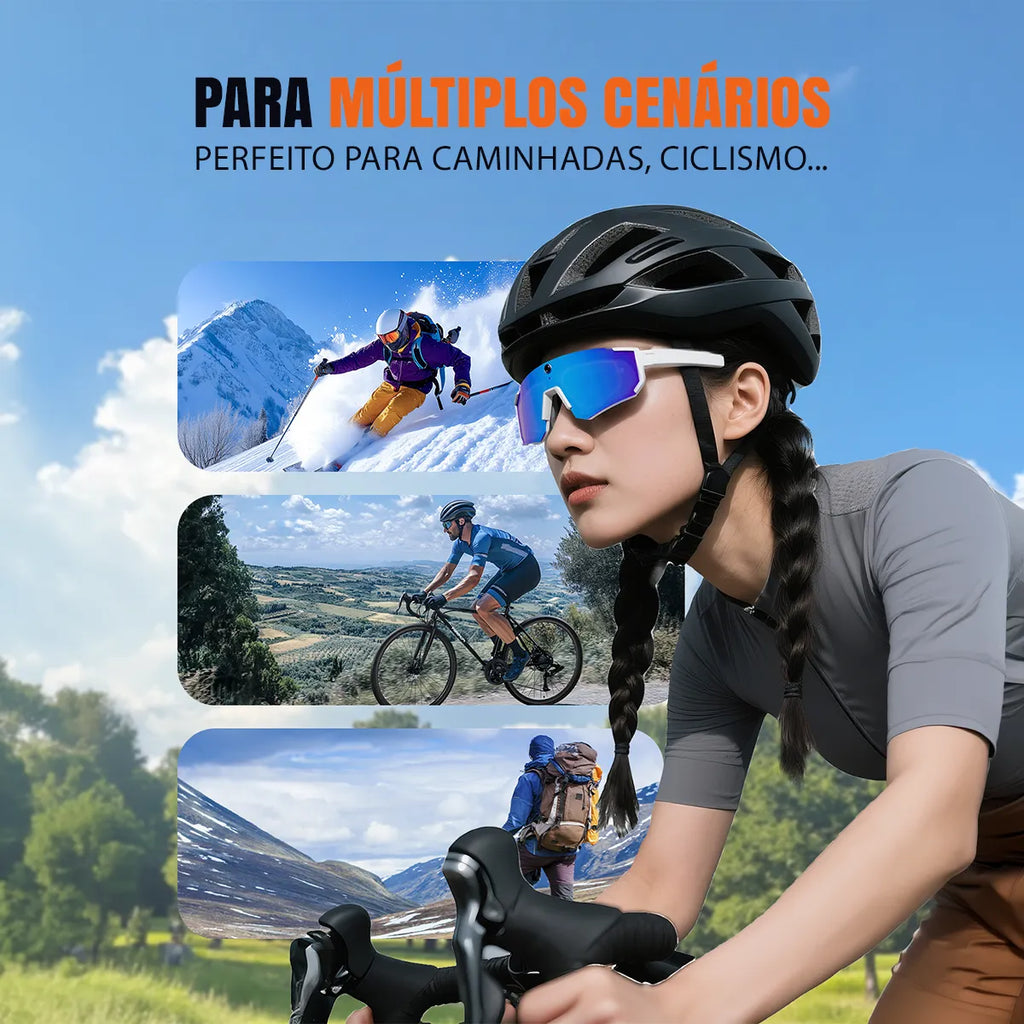 • Visão e Proteção HD: Lentes de alta definição que filtram raios UV e melhoram o contraste em diferentes condições de luz.