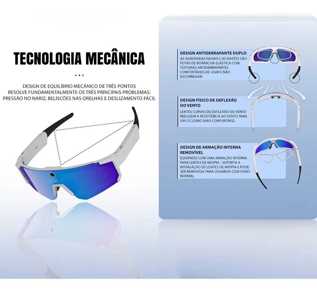 Óculos Esportivo Inteligente – Câmera Integrada, Áudio 360° e Tecnologia IA